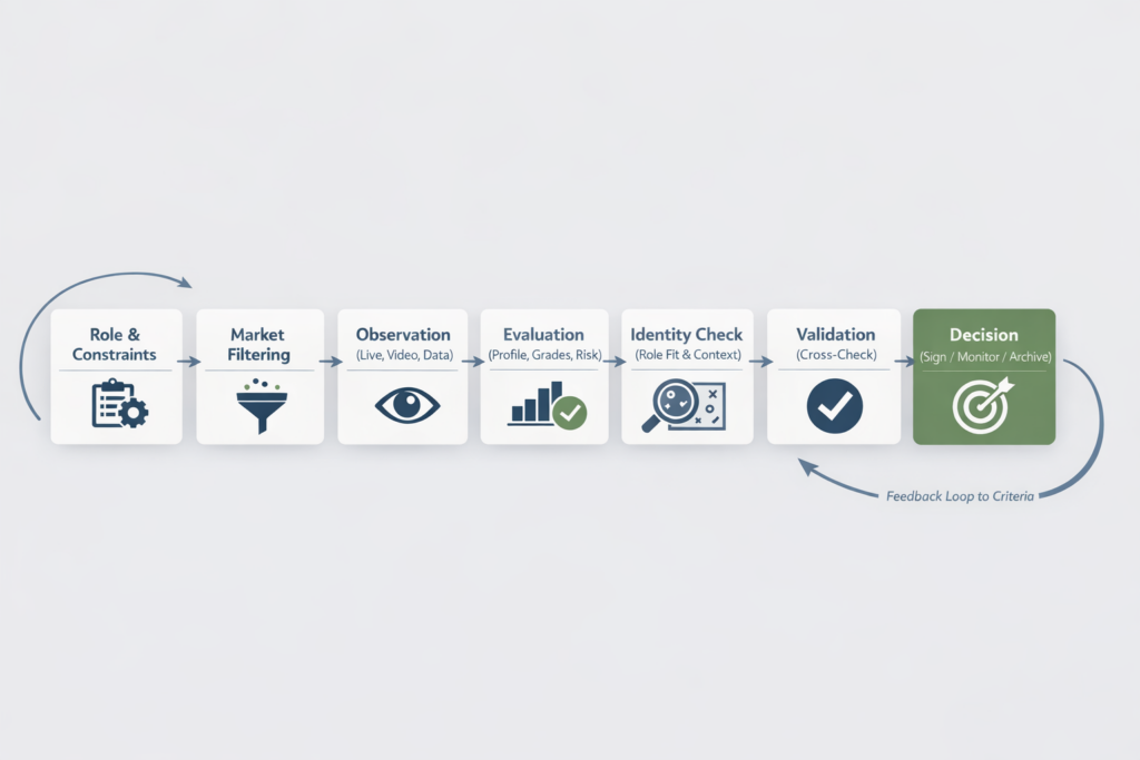 If roles are undefined → evaluation becomes subjective. That single error creates a cascade: scouting becomes inconsistent, comparison becomes noisy, and decisions become political instead of evidence-based.